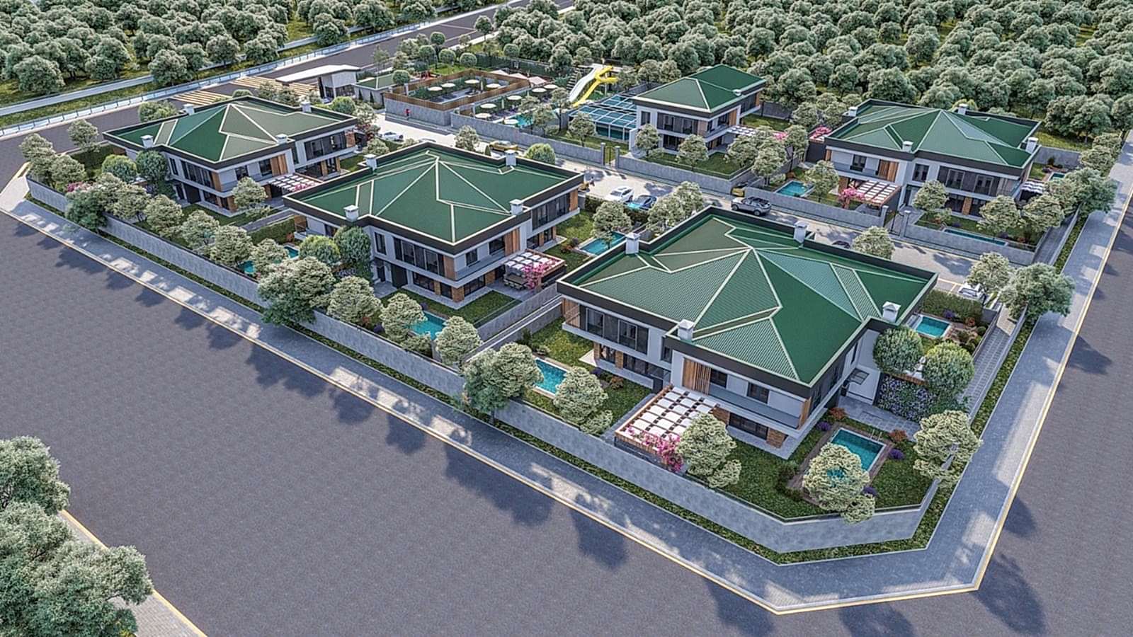 Doğayla uyumlu yeşil alan tasarımlarımız, otomatik sulama sistemleri ve özenle seçilmiş bitki dokusuyla villaların yaşam kalitesini yükselttik. Aynı zamanda yürüyüş yolları, dinlenme alanları ve fonksiyonel sert zemin uygulamalarıyla estetik ve konforu bir arada sunduk.